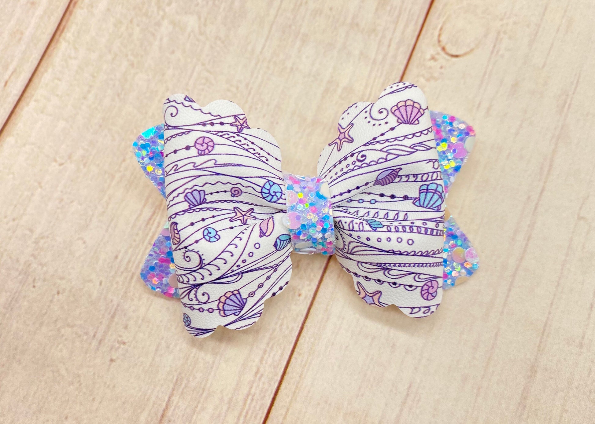 This hand made hair bow is made out of vegan leather and luxe glitter leather.