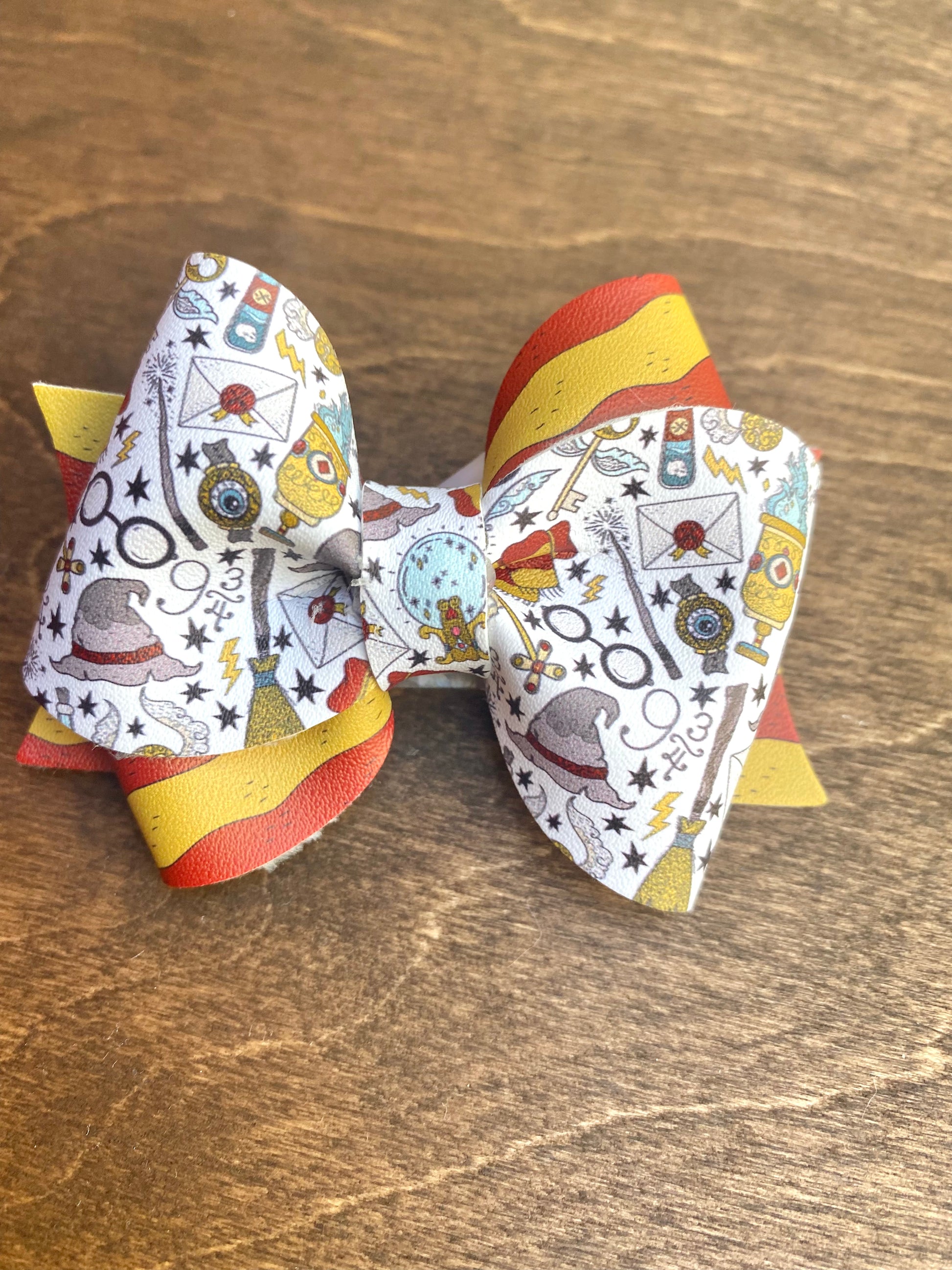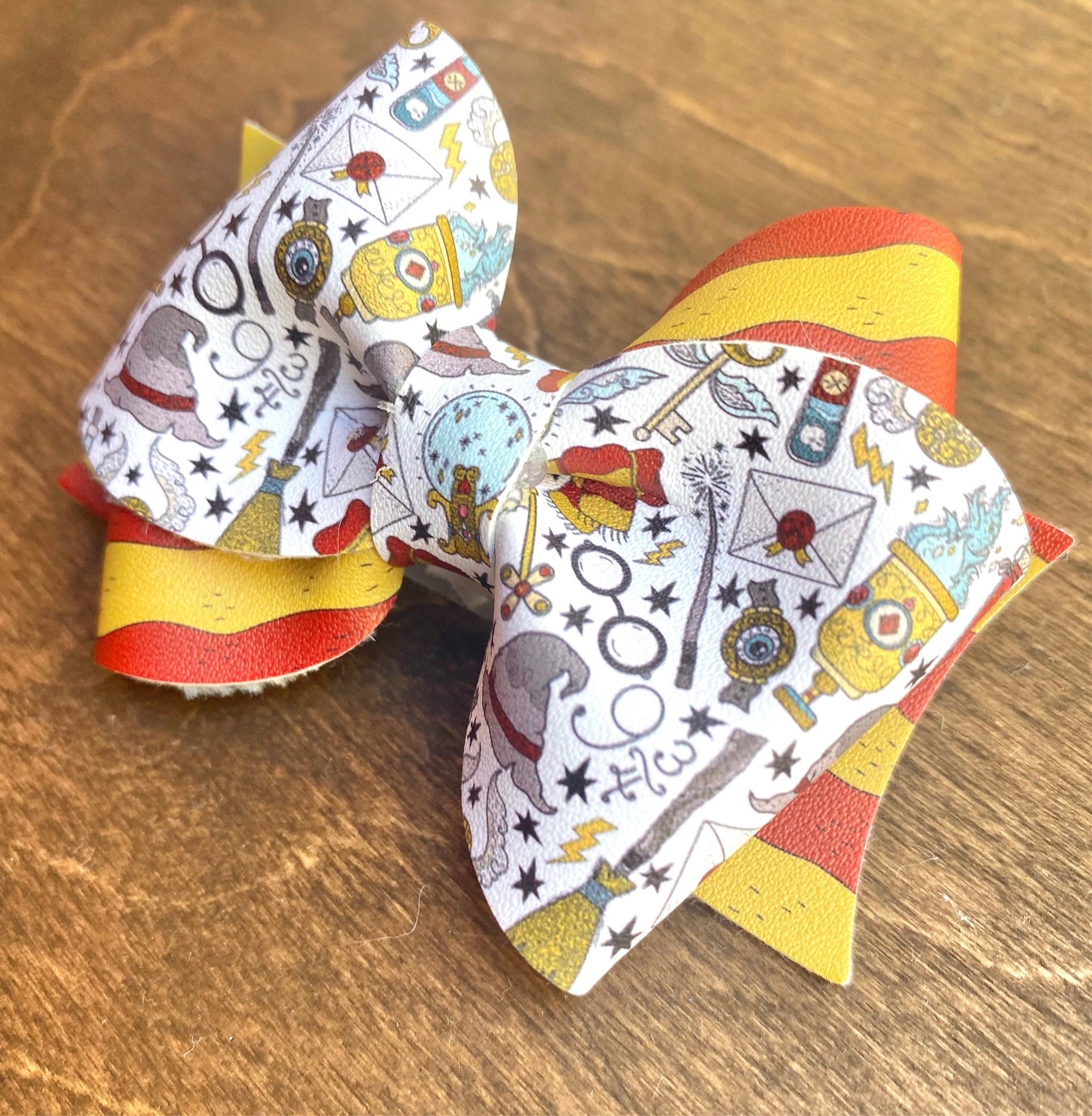 This hand made hair bow is made out of vegan leathe and luxe glitter. This bow size is 3” wide.