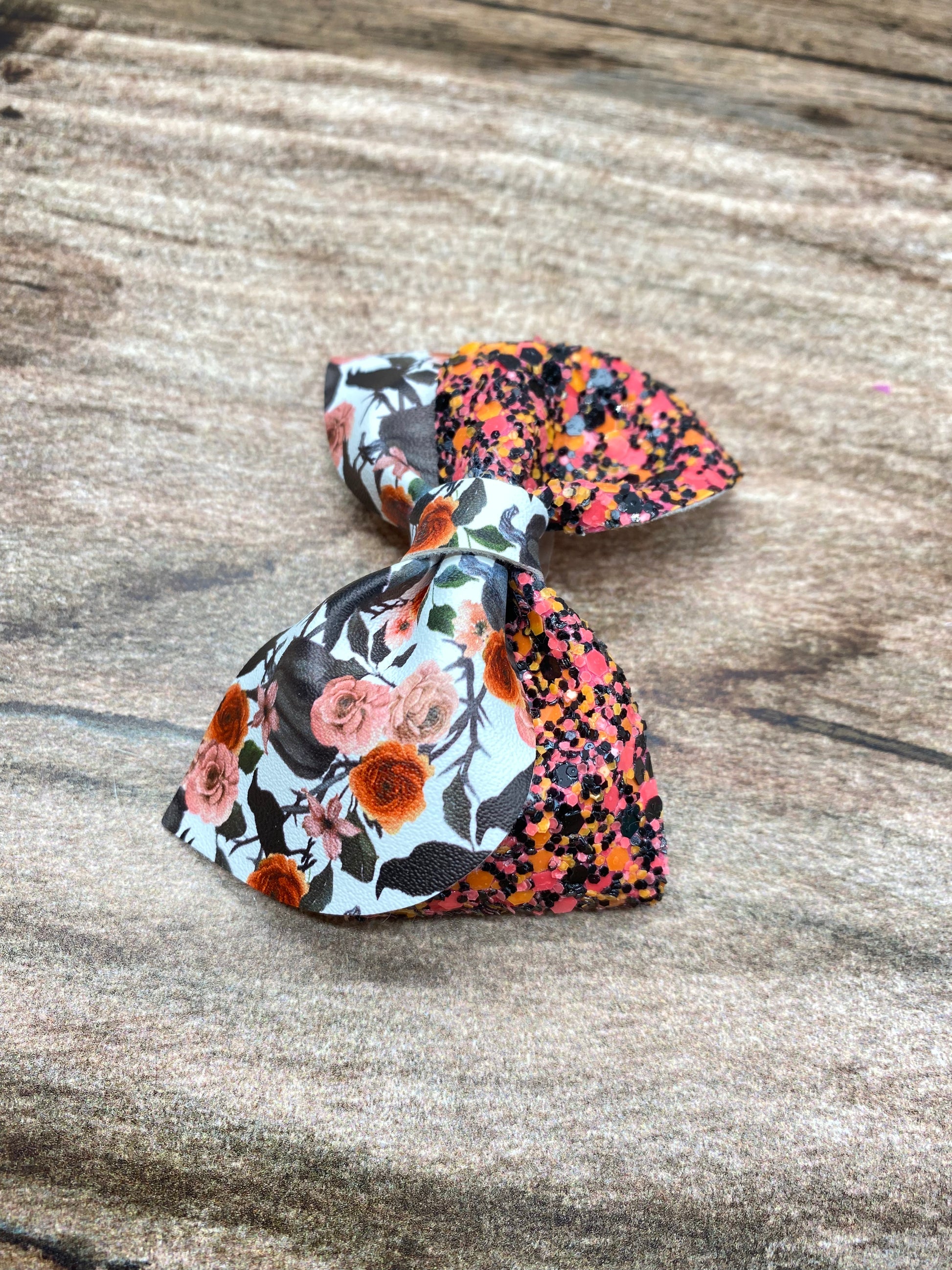 - Vegan leather bow and Luxe glitter leather