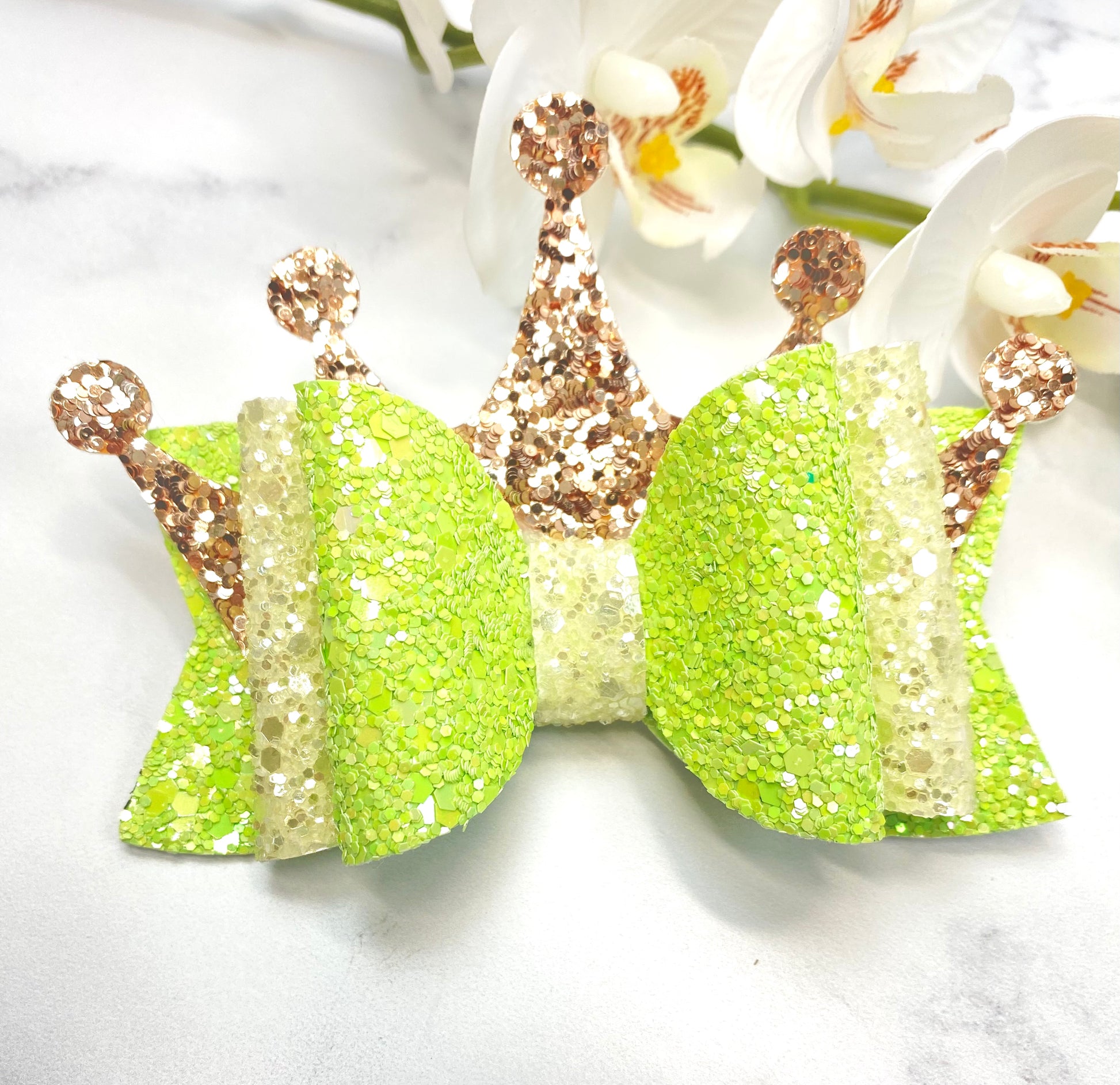 This hand made hair bow is made out of luxe glitter leather. This bow size is 4 inches wide.