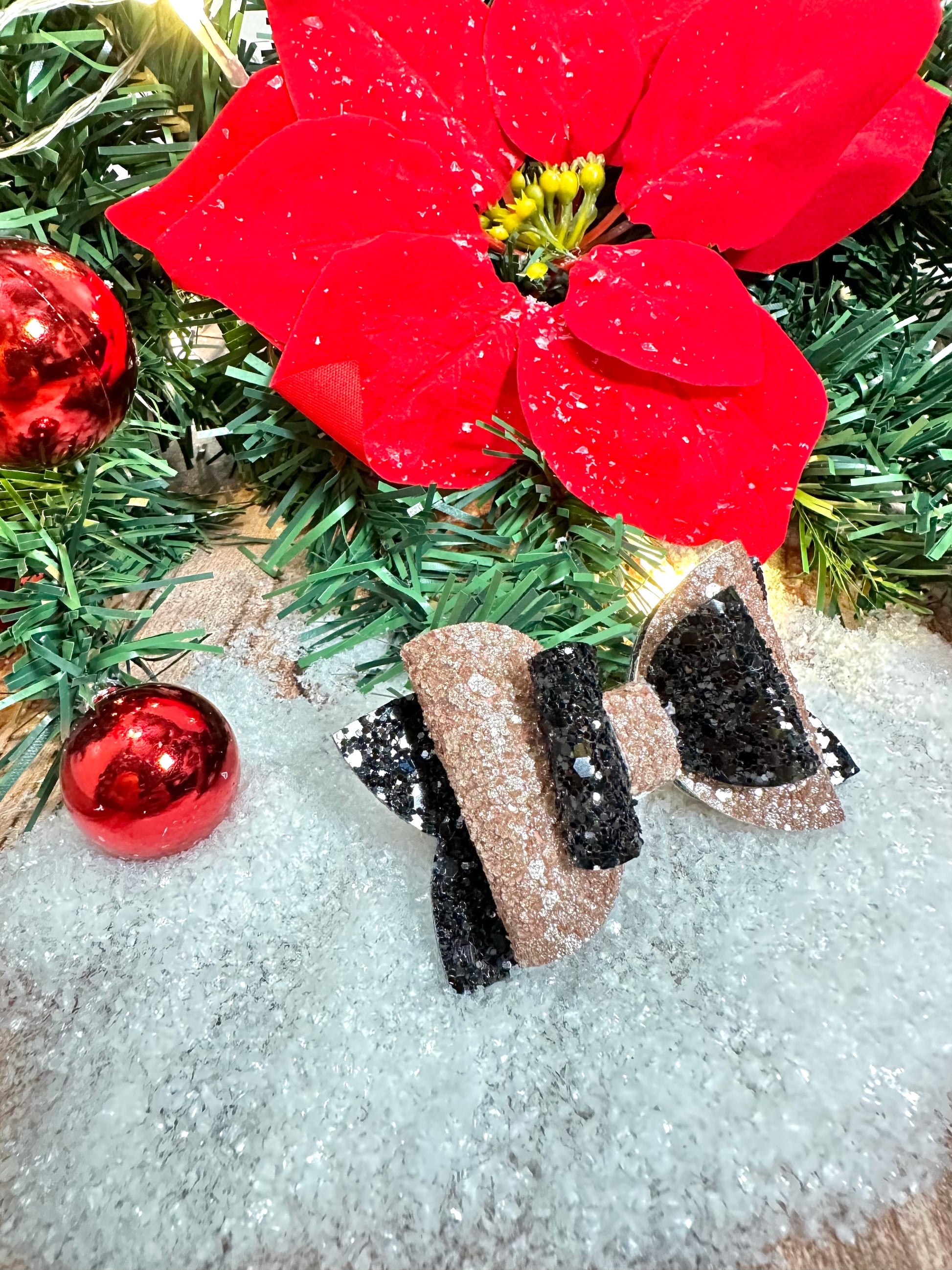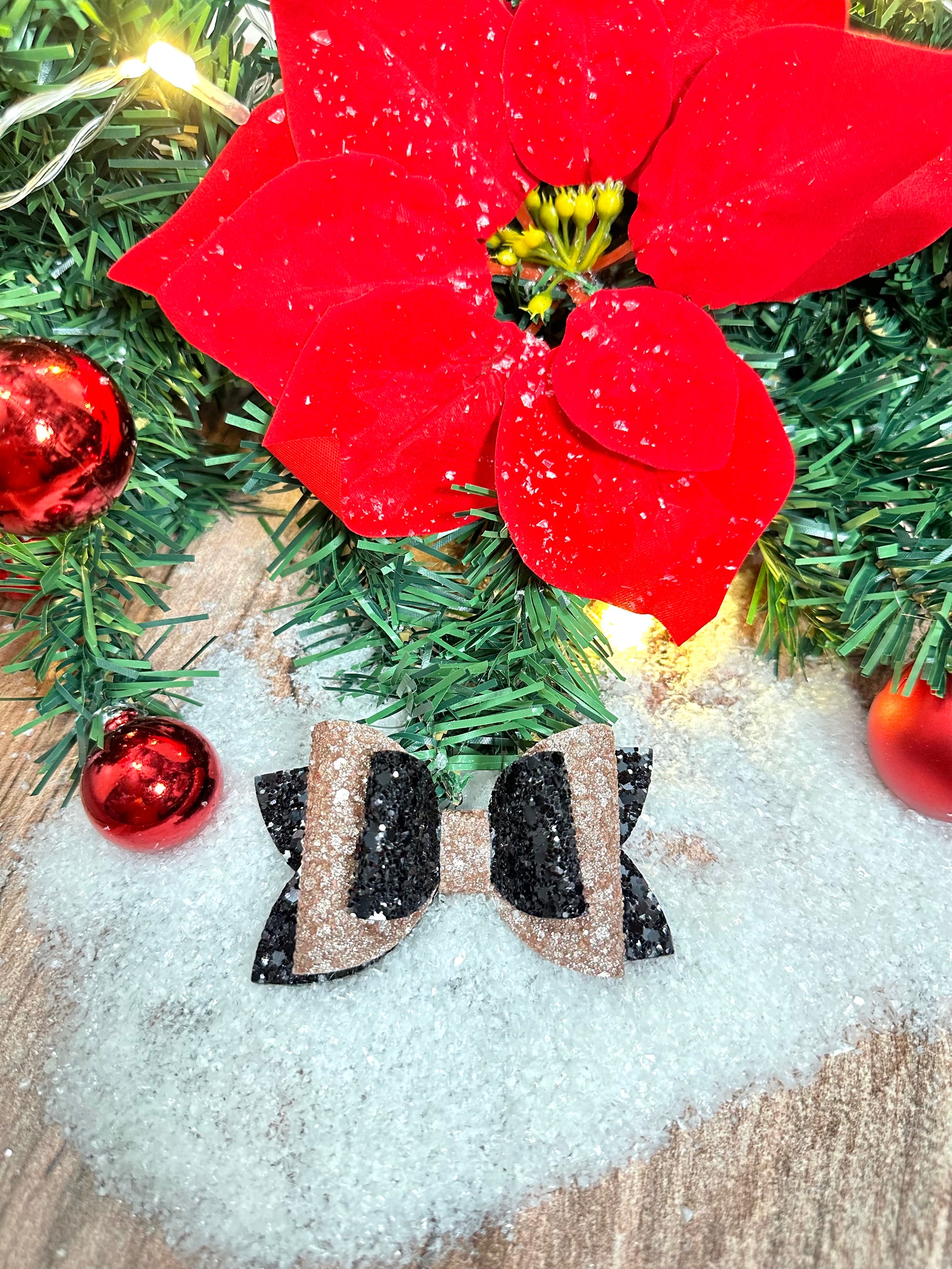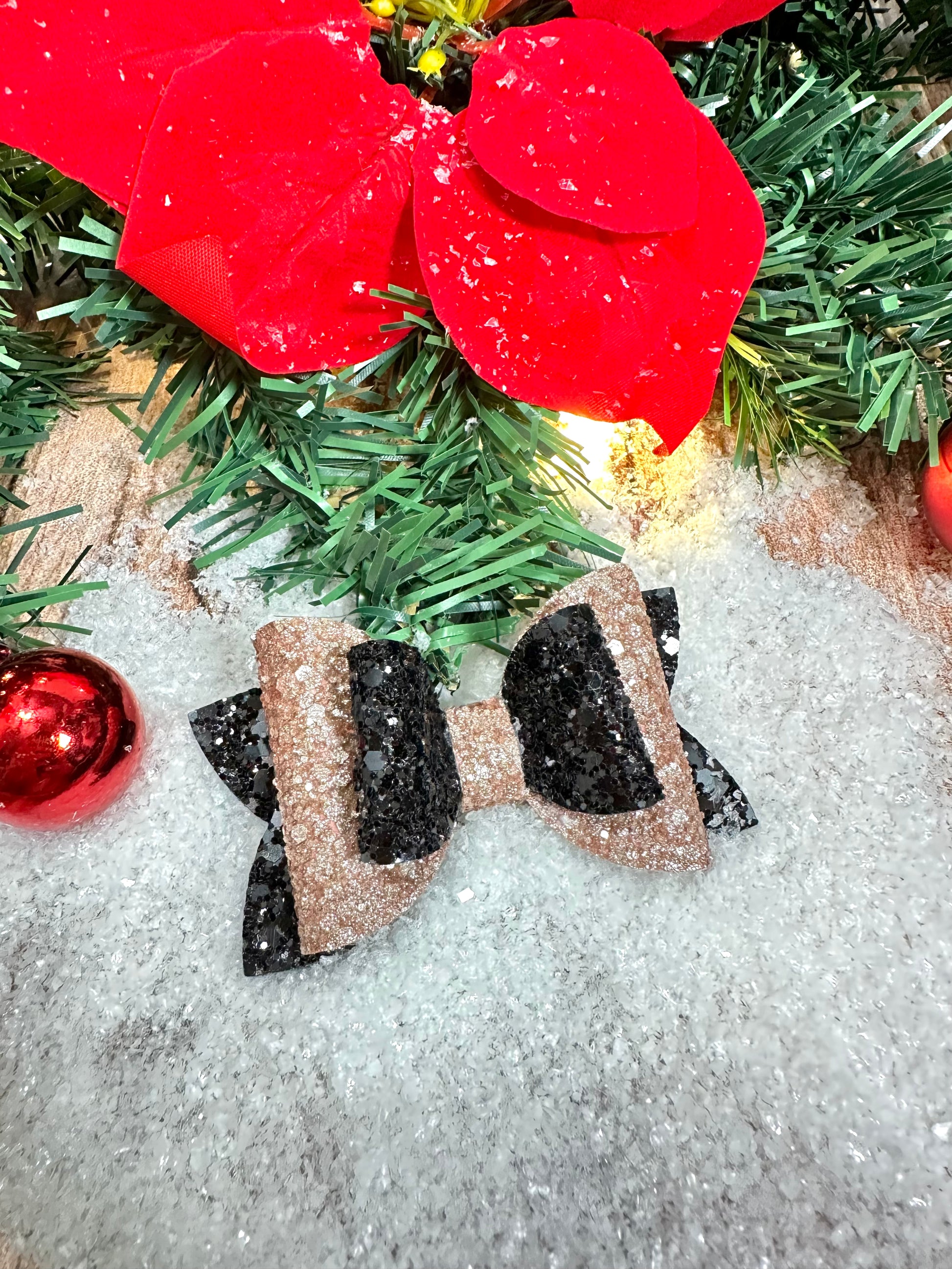 This beautiful hand made hair bows is made of glitter vegan leather.