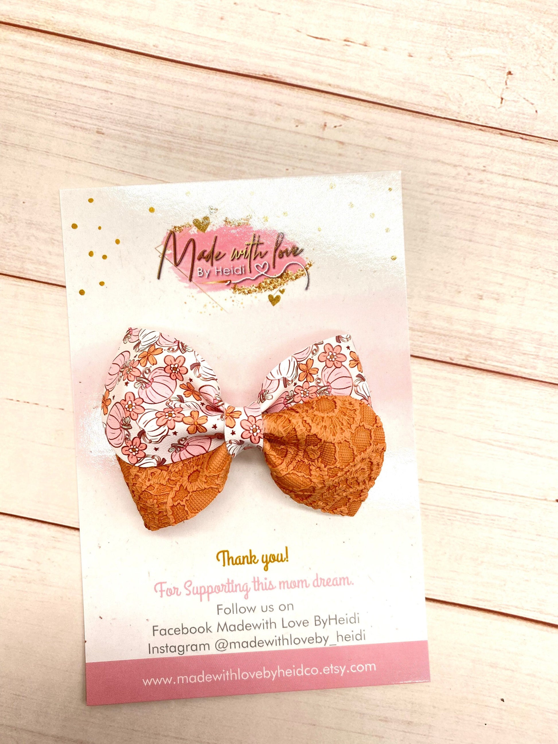 This hand made hair bow is made out of vegan leather and luxe lace leather. This bow size is 3.5” wide. This product sell as show in the picture. We do not accept returns! In any of our products. All our products are hand made. Shipping -All our products are Ready to ship -You will get a tracking number - Vegan leather bow and Luxe glitter leather - Bows are the perfect accent for any outfit! - Neatly packaged, making them great baby shower, holiday, and birthday gifts! - Cleaning use a damp towel. Do not wash please! > Please, be safe! We highly suggest that you NEVER leave any child unattended with our products, as they do contain small pieces! Made from a pet free/smoke free home. All the hair bows are hand made with love by me. Please note color may differ slightly due to monitor variations. Contact me if you would like a custom set. We’d love to see your cutie making a statement with our bows. Tag and follow us on Instagram for new product announcements and promotions! @madewithloveby_heidi