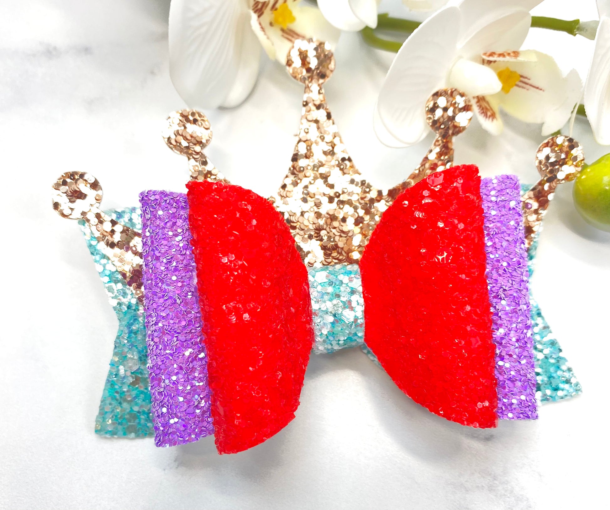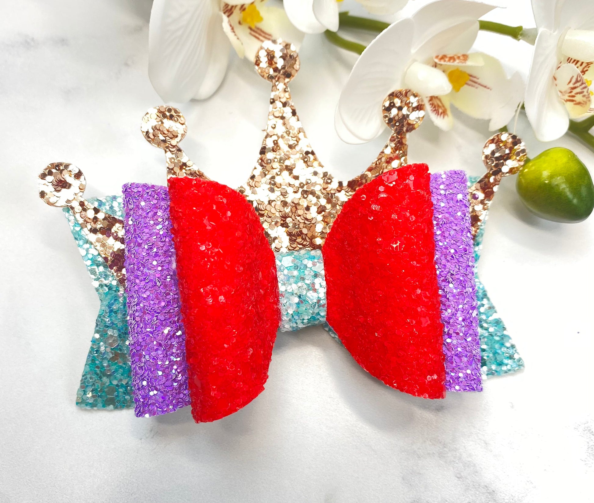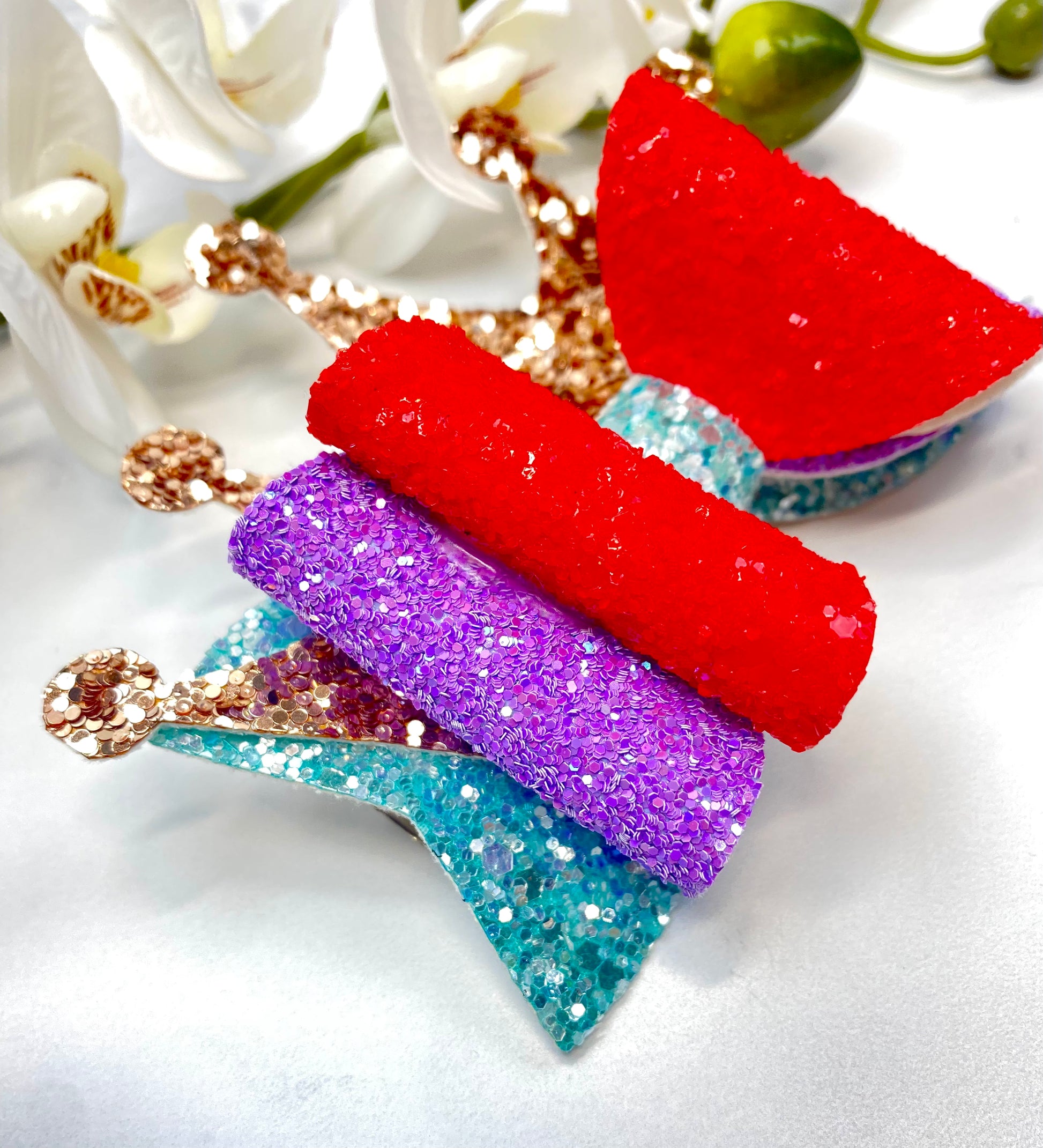 This hand made hair bow is made out of luxe glitter leather. This bow size is 4 inches wide.