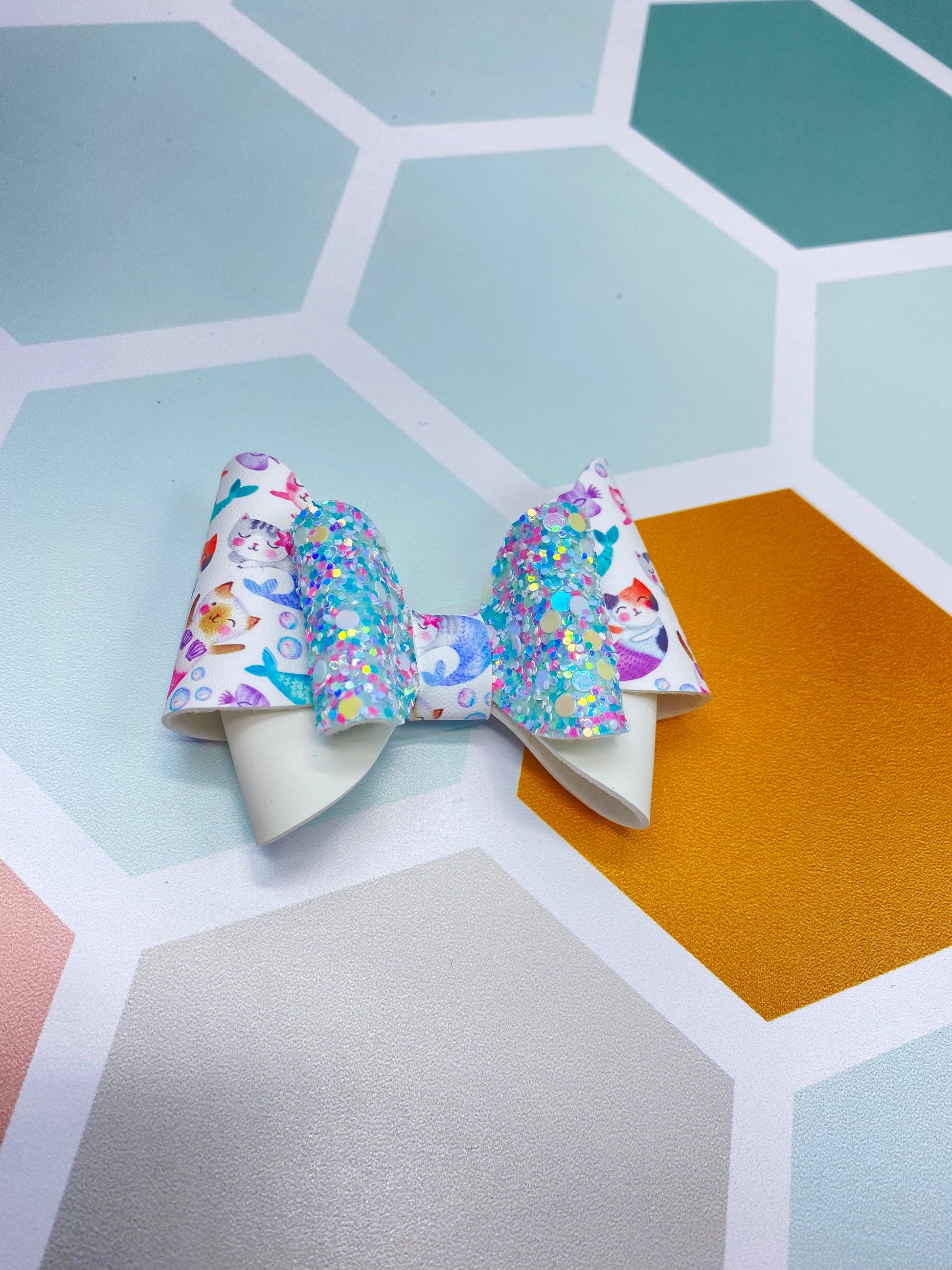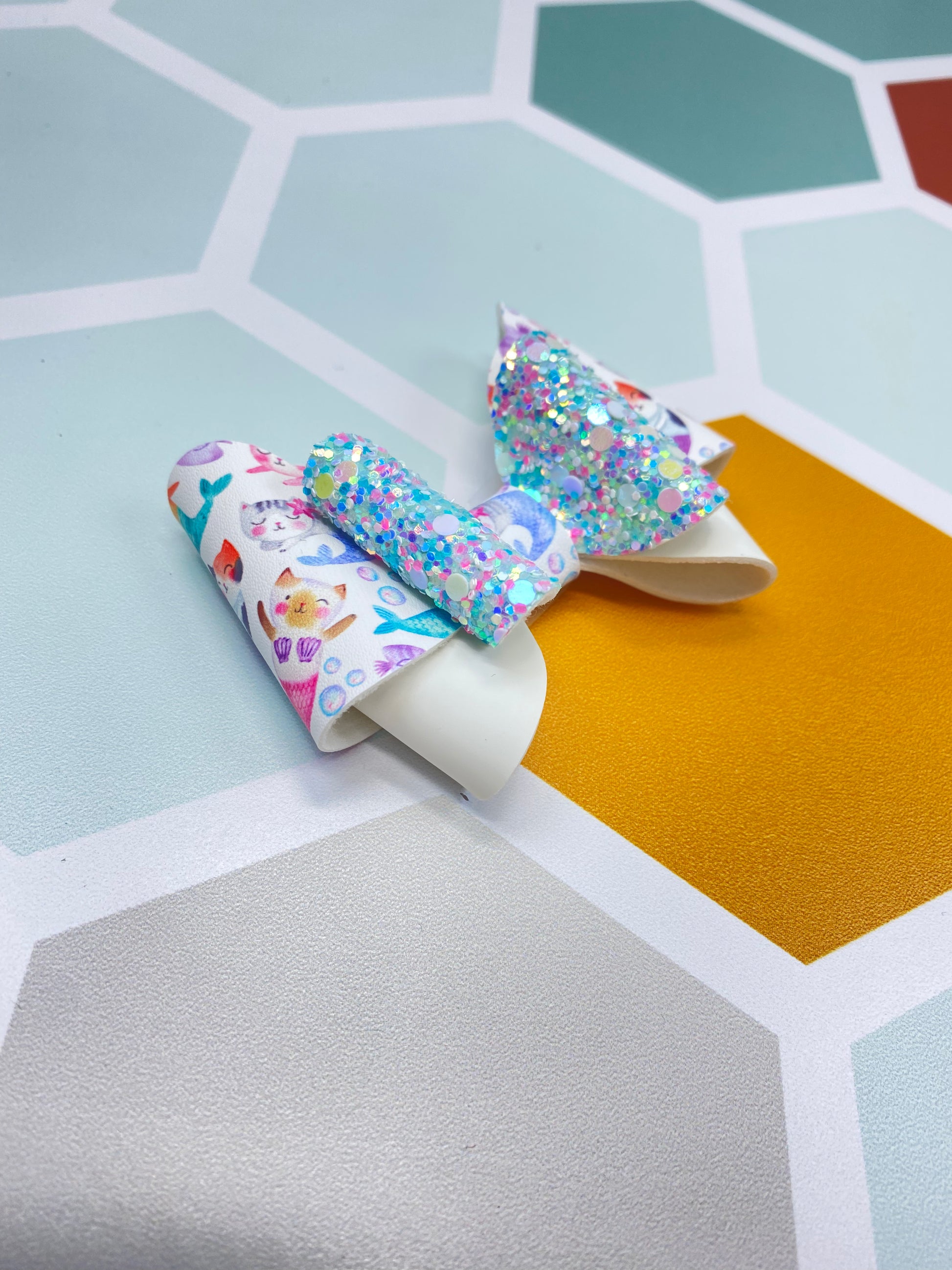 - Vegan leather bow and Luxe glitter leather