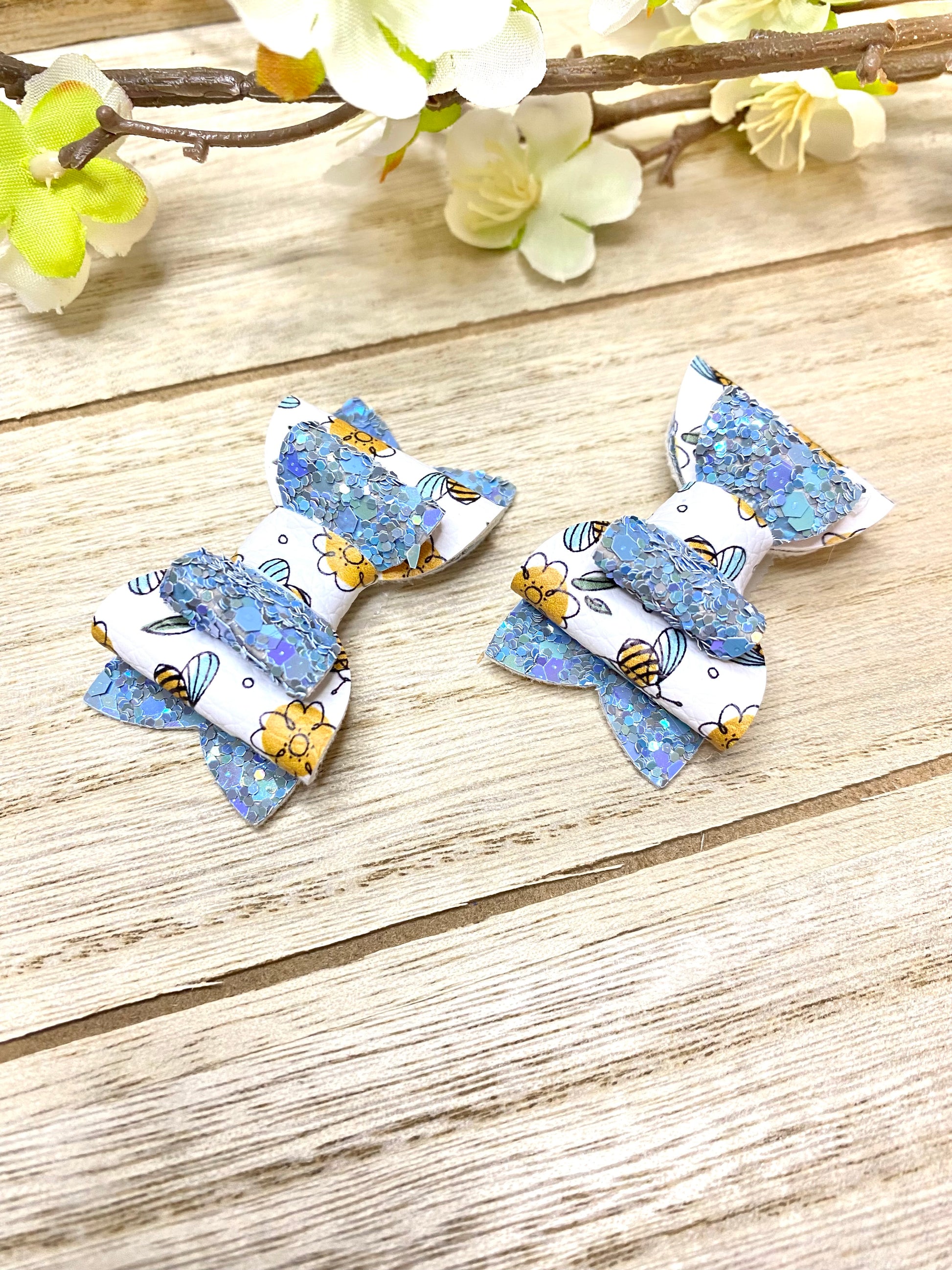 This hand made hair bow is made out of vegan leather. This bow size is 2” wide.