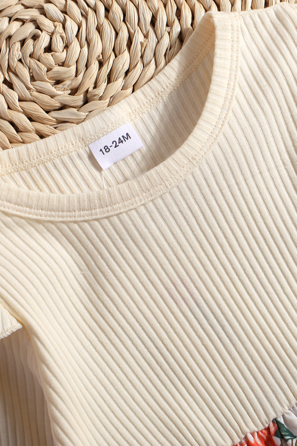 Girls Two-Tone Floral Hem Ruffle Shoulder Dress