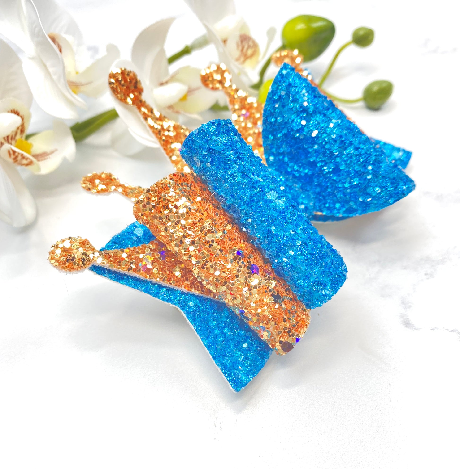 This hand made hair bow is made out of luxe glitter leather. This bow size is 4 inches wide.