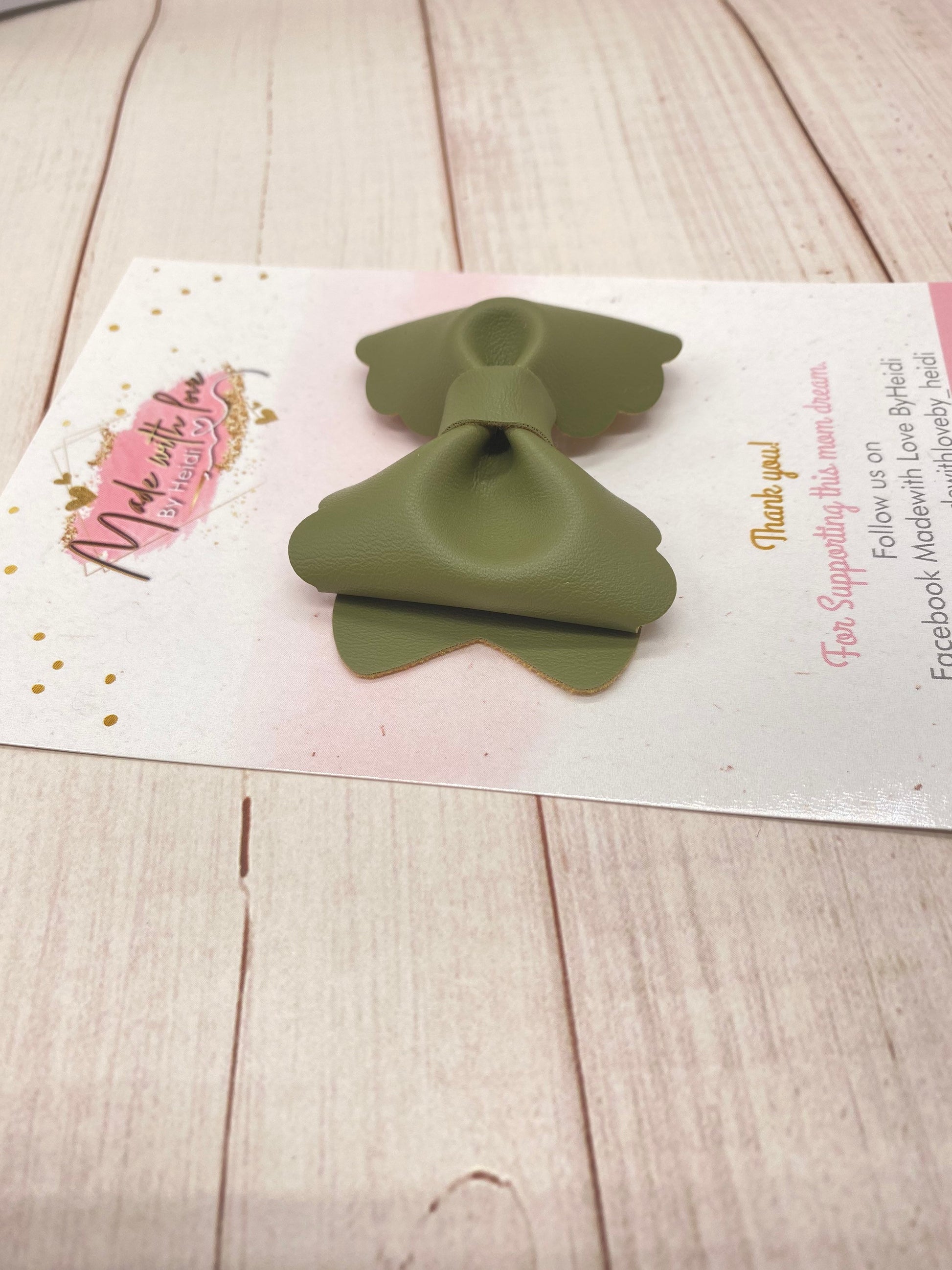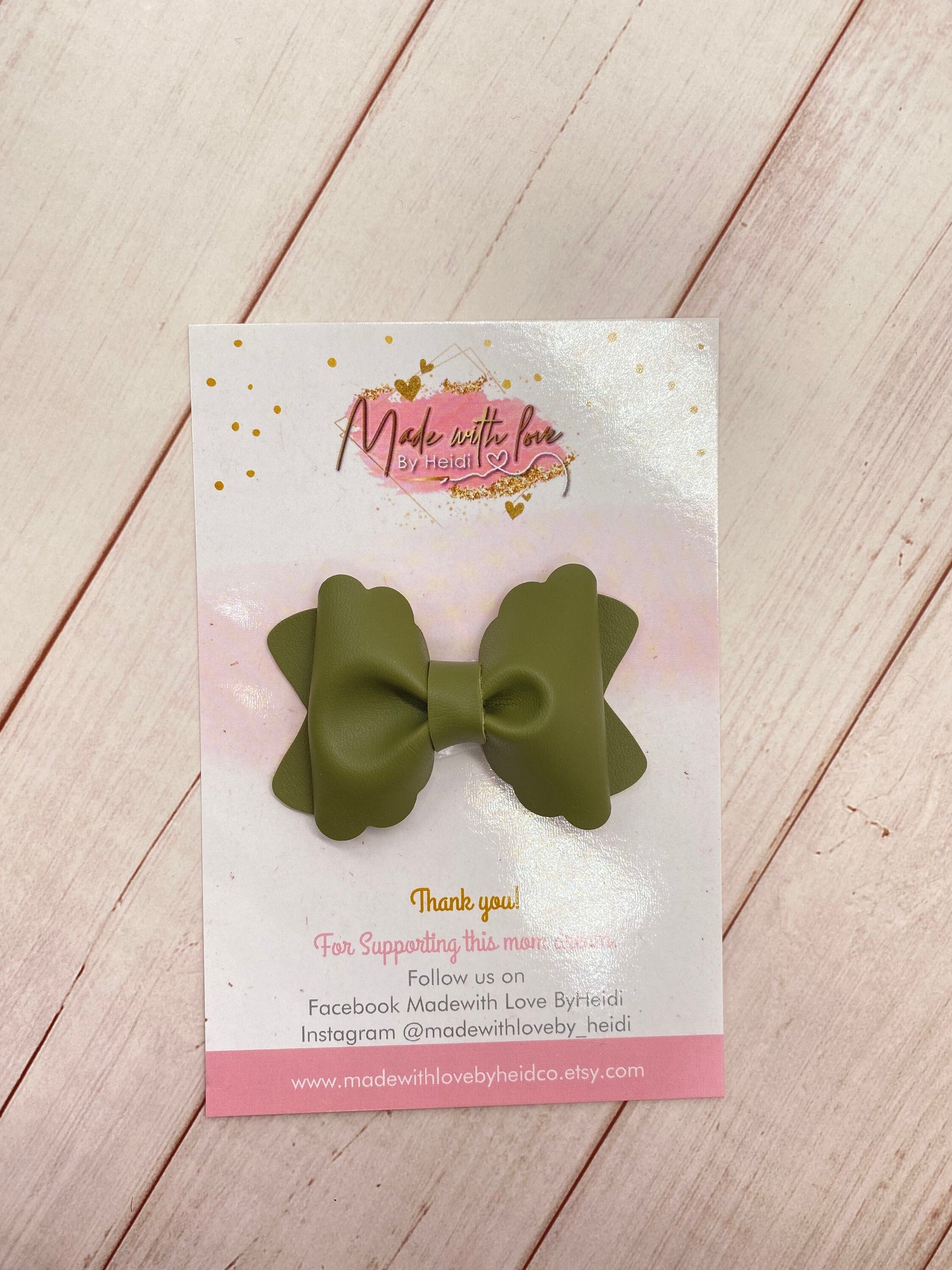 This hand made mommy and me set is made out of vegan leather and polymer clay.
